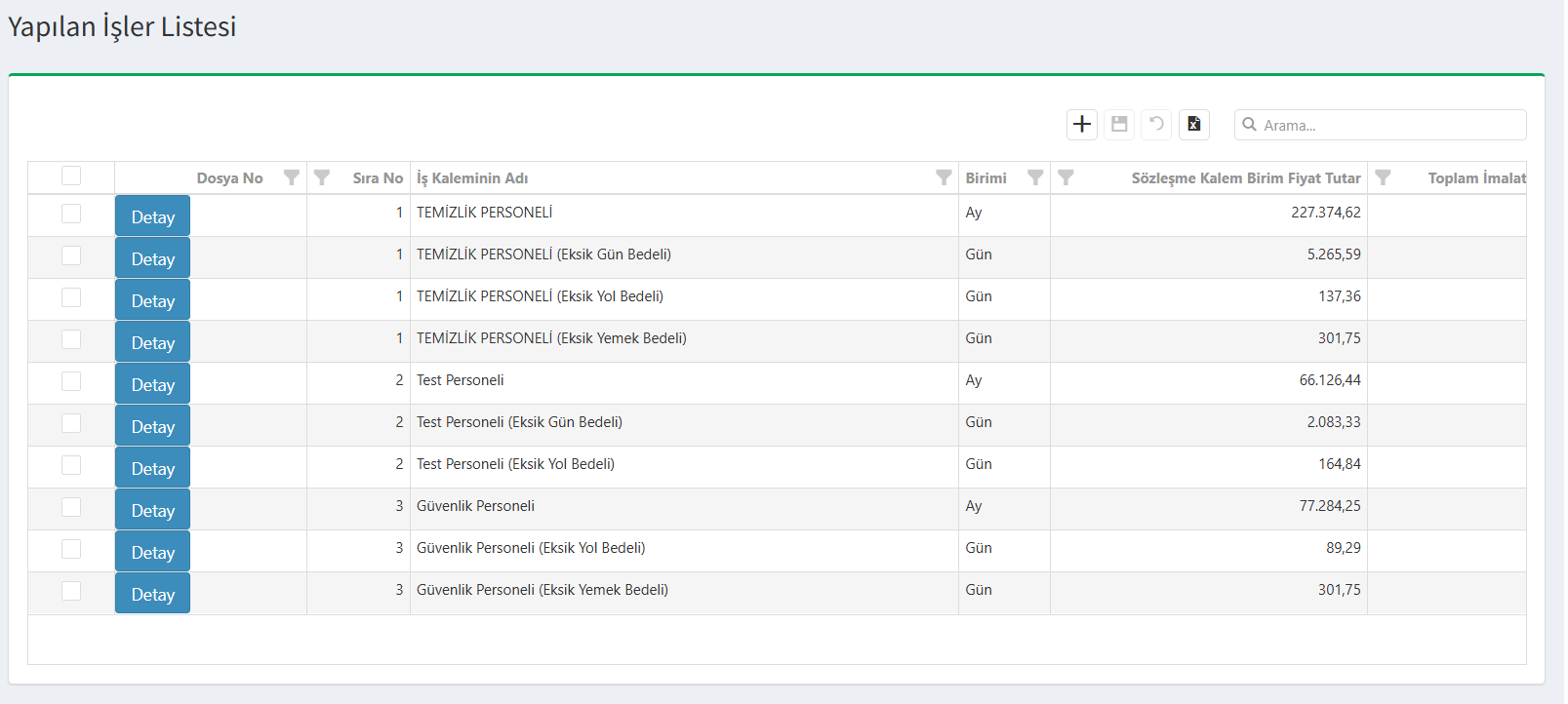 Sistem; personellerin toplam çalışma gün sayısını, toplam eksik günlerini ve eksik yol/yemek sayılarını otomatik olarak hesaplar ve tek bir ekranda kalem kalem listeler.