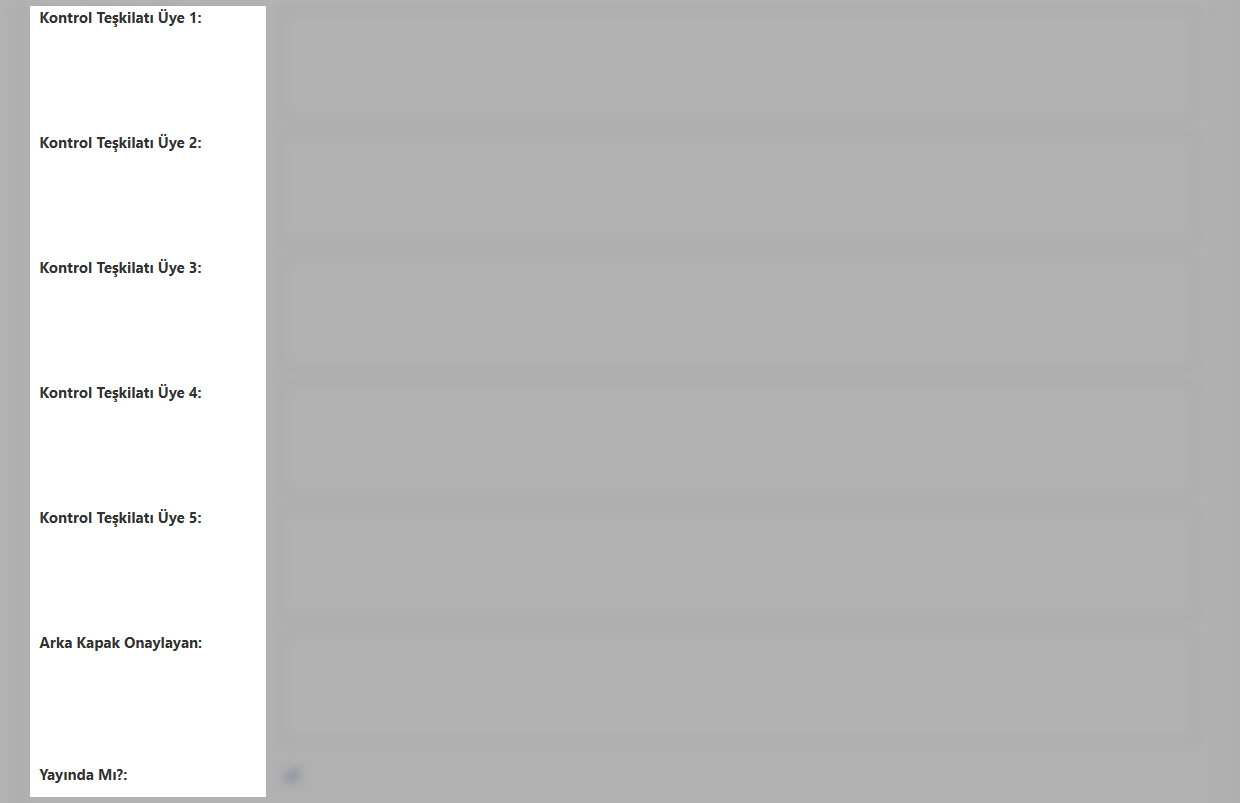 Üye Bilgileri: Kontrol teşkilatında yer alan üyelerin (Üye 1, Üye 2, Üye 3...) bilgilerini ilgili alanlara tanımlayın.