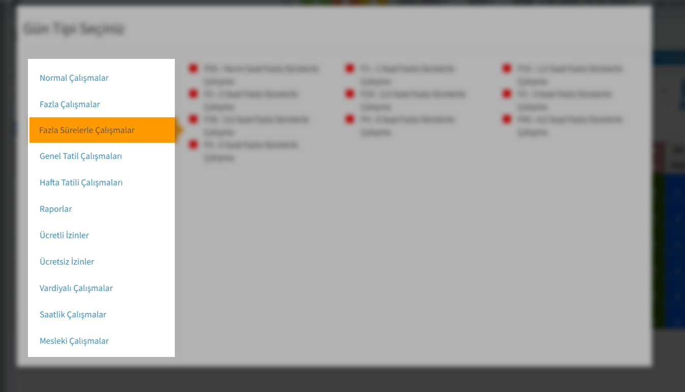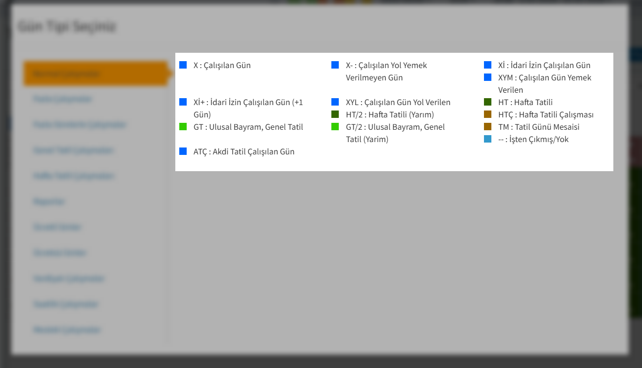 - Sağ taraftan ise personelinize atamak istediğiniz puantaj tipini seçip üzerine bir kez tıklamanız yeterlidir.